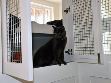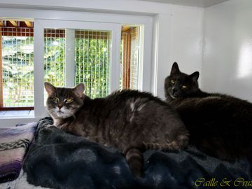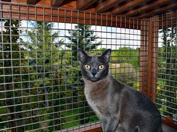 This wing backs northeast onto a variety of trees with bird feeders. This wing is ideal for cats who enjoy bird watching, as well as viewing other wildlife, such as squirrels, porcupine, weasels, deer and occasionally moose and coyotes.
